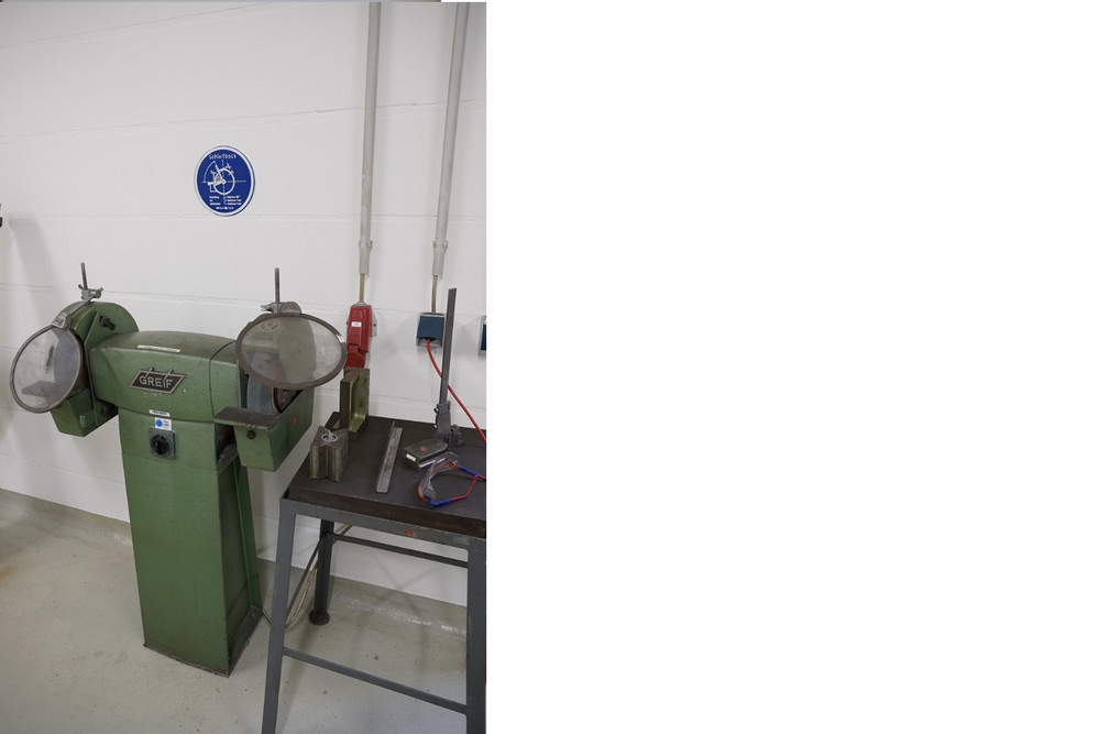 Die Greif DV 30-1-1 ist ein Werkstatt-Schleifbock. Ein Schleifbock besteht aus mehreren rotierenden Schleifscheiben an einer Antriebswelle, die über einen Elektromotor betrieben wird. Durch Kontakt zwischen Werkstück und Schleifscheibe wird Material abgetragen, Kanten geglättet, entgratet oder Werkzeuge geschärft. Je nach Scheibentyp bzw. Körnung kann grob abgetragen oder fein nachbearbeitet werden.