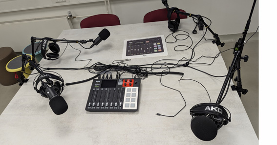 Die Podcaststation mit dem Rode Rodecaster Pro ist ein komplettes Audio-Setup, mit dem du Podcasts, Interviews oder Audioaufnahmen direkt starten kannst – ohne aufwändige Studiotechnik. Das Herzstück ist das Rode Rodecaster Pro Mischpult, das speziell für Podcaster*innen entwickelt wurde. Es kombiniert Audio-Mixer, Mikrofon-Vorverstärker, Sound-Pads und Aufnahmefunktionen in einem Gerät. Damit kannst du mehrere Mikrofone gleichzeitig aufnehmen, Effekte einspielen und direkt auf SD-Karte aufnehmen.